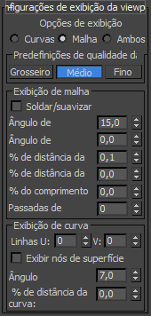 O controle das configurações Exibição de malha controla como o Objeto de corpo é exibido na viewport. Essas configurações também são utilizadas na conversão em formato de malha/polígono editável para controlar como os polígonos são criados.