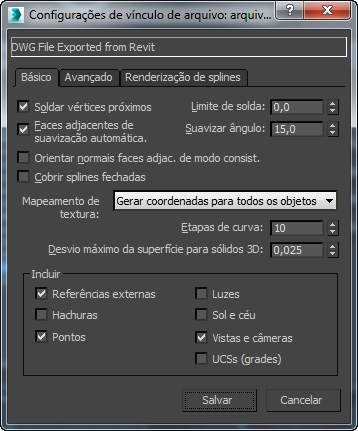 - Importa as vistas nomeadas do arquivo DWG e as converte nas câmeras do 3ds Max.