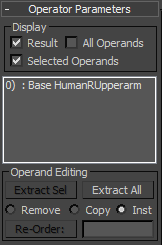 Extrai todos os operandos. Como os operandos são extraídos depende da opção de extração: Remover, Copiar ou Inst(ância) (consulte a seguir).