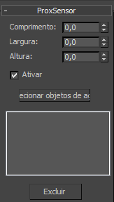 Ativa o Sensor de proximidade. Quando essa caixa de seleção está desmarcada, o sensor não tem efeito, mesmo se objetos tiverem sido selecionados.