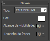 Especifica o tipo de névoa (linear ou exponencial). Linear significa que a quantidade de fusão é uma função linear da distância, resultando em um efeito de profundidade. Exponencial utiliza um aumento exponencial na mesclagem, resultando em uma aparência de névoa mais natural.