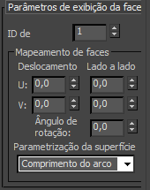 Use essas configurações para definir as propriedades de material e mapeamento como ID, deslocamento e o grau de lado-a-lado para as faces selecionadas.