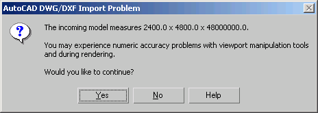 Se qualquer lado da caixa delimitadora da cena mede mais que ± 1.000.000 unidades do sistema, você verá a caixa de diálogo a seguir: