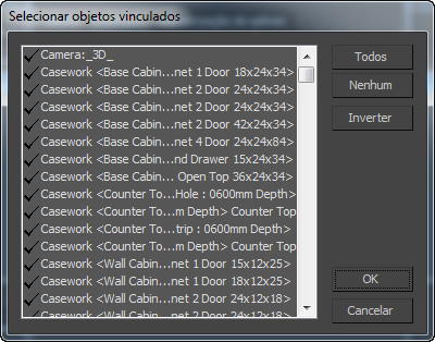 Seleciona todos os objetos vinculados no arquivo vinculado. A seguir, é possível cancelar a seleção de objetos vinculados específicos clicando em suas linhas.