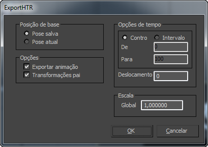 - Ative para exportar todas as chaves de animação. Caso contrário, apenas a posição básica será exportada.