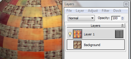 A camada 1 utiliza um bitmap do verificador como uma máscara de camada para mostrar a camada de fundo em um padrão regular.