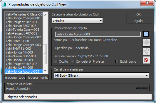Objetos criados no 3ds Max, mas não pelo Civil View, não aparecem neste painel e, enquanto este painel está ativo, você não pode selecionar tais objetos nas viewports.