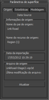Se o objeto de Superfície foi derivado a partir de dados de triangulação importados (TIN), este grupo exibe informações relativas à superfície importada.