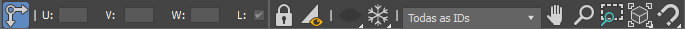Contém controles para manipular os subobjetos da textura na janela de visualização e opções de configuração. Ao transformar com Rotação e Redimensionamento, pressionar Ctrl + Alt irá permitir que você transforme a seleção do ponto de clique do mouse, em vez da seleção central. O primeiro clique especifica o centro da transformação.