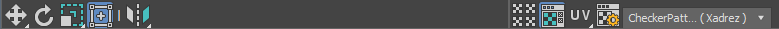 A textura xadrez denominada CheckerPattern (Xadrez), útil para verificar áreas distorcidas do mapeamento de textura, é embutida na caixa de diálogo Editar UVWs. Por padrão, esta textura é exibida como a textura do plano de fundo quando você abre primeiro o editor após aplicar Revelar UVW para um objeto. Para fazer com que o padrão apareça no objeto nas definições das viewports para exibir texturas, selecione a partir da lista suspensa, mesmo se ele já estiver ativo no editor.
