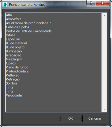 Essa caixa de diálogo permite selecionar os elementos a serem renderizados.
