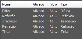 A coluna Filtro da lista de elementos mostra se o filtro está ou não desativado para um elemento.