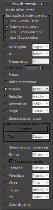 - Este campo de somente leitura amostra o tipo de saída das suboperator, de acordo com a seleção do tipo de dados que deseja incluir no sistema de partículas de proxy.