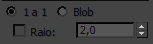 Quando a densidade da malha for alterada no Criador de vestuário, a seleção do grupo será reatribuída. A opção Blob seleciona o vértice original e aqueles criados em um determinado raio do mesmo. O raio pode ser deixado no padrão ou no automático ou pode ser definido manualmente.
