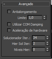 - O número de iterações para o solucionador hierárquico. Na "hierarquia" mCloth se refere à propagação de forças aplicadas em um determinado vértice para vértices adjacentes. Usar um valor maior aqui melhora a precisão de propagação.
