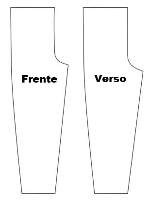 Um modelo de calça tem uma forma curva na parte superior para acomodar os quadris. A borda reta maior é a costura de fora, enquanto a menor é a costura de dentro. A curva próxima da parte superior ajusta-se em torno da barriga ou das nádegas e na área do cavalo.
