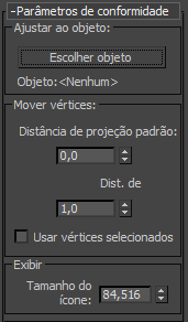 Após criar uma conformidade de Distorções espaciais, especifique um objeto alvo nos parâmetros de conformidade, em seguida, vincule a Conformidade ao objeto que deseja deformar. Girar o ícone Conformidade para especificar a direção de deslocamento (para o objeto de destino). Os vértices do objeto deformado se movem até atingir o objeto de destino.