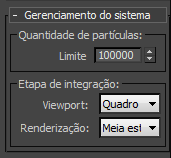 Use estas configurações para limitar o número de partículas no sistema e para especificar a frequência de atualização do sistema.