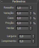 Controla a velocidade na qual as partículas ressaltam do defletor. Em uma configuração de 1,0, as partículas ressaltam do defletor na mesma velocidade em que o atingem. Em 0,0, as partículas não ressaltam. Em valores entre 0,0 e 1,0, as partículas ressaltam do defletor em uma velocidade reduzida com relação à velocidade inicial. Em valores maiores que 1,0, as partículas ressaltam do defletor a uma velocidade maior que a velocidade inicial. Padrão=1,0.