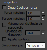 - Quando ativado, as configurações de Fragilidade restantes se tornam disponíveis e permitem especificar as condições sob as quais as associações podem ser rompidas. Para uma ruptura natural, com aparência aleatória, os dois parâmetros mais importantes são Força Máx. e Torque Máx.