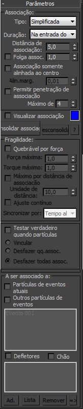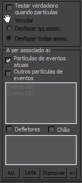 - Quando ativado, as partículas no evento atual podem associar-se a outras partículas neste evento. Esta é a única opção Associar Com ativada por padrão.