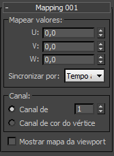 A configuração Canal determina se o mapeamento é aplicado a um canal de mapa ou para um canal de cores pelo vértice.