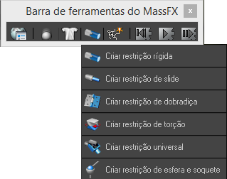Como o nome sugere, uma restrição (ou "articulação") do MassFX restringe o movimento de corpos rígidos na simulação. Alguns exemplos de restrições no mundo real incluem articulações, unhas, tirolesas e eixos.