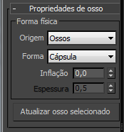 - Ossos Ajusta a forma física em torno da forma do osso. Esta opção é tipicamente útil somente quando o personagem não contém uma malha de pele.