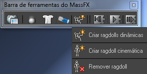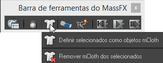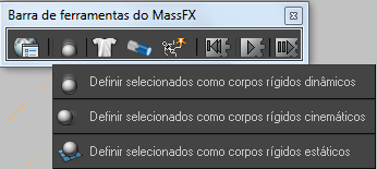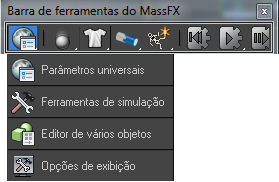 A barra de ferramentas do MassFX fornece acesso rápido aos comandos mais frequentemente usados.