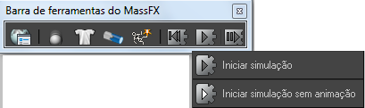 Simulação - submenu MassFX (quando a opção Iniciar Simulação está ativa na barra de ferramentas do MassFX) e como