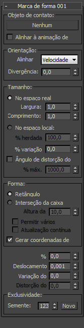 Dica: Por padrão, a marca deixada por Marca da Forma é sempre retangular, independentemente da forma das partículas. Para deixar uma marca com forma ligeiramente diferente, escolha o grupo Forma
