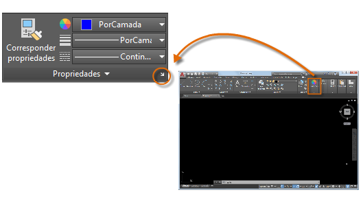 A paleta Propriedades é uma ferramenta essencial. Para abri-la, use o comando PROPRIEDADES (insira PR na janela de comandos). Como alternativa, você pode pressionar Ctrl+1 ou clicar na pequena seta no painel Propriedades na guia Início, o que preferir.