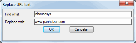 É possível especificar um URL completo ou parcial. Por exemplo, você pode substituir todas as referências de hiperlink .com por .net ou substituir um URL interno por um URL para um site externo em uma única operação.