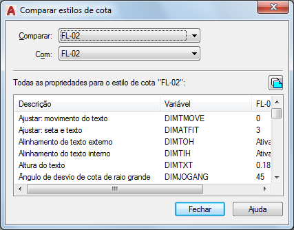 Compara as propriedades de dois estilos de cota ou exibe todas as propriedades de um estilo.