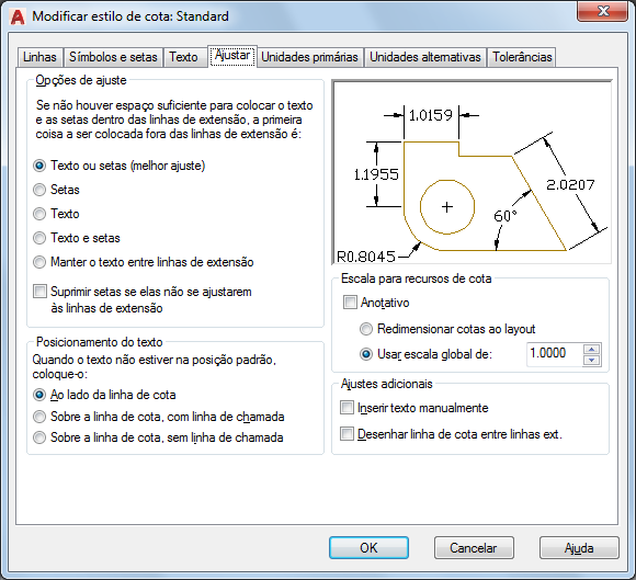 Fornece opções adicionais para o posicionamento do texto de cotas.