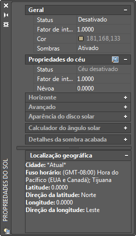 Exibe as coordenadas da direção do sol. Esta definição é somente leitura.