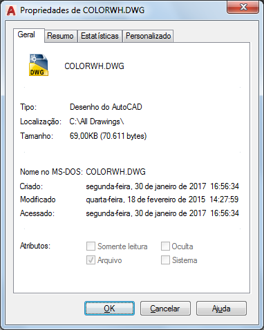 Exibe informações somente leitura sobre o arquivo de desenho, extraídas do sistema operacional.