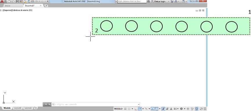 Com SELECTIONOFFSCREEN definida como ativada, os objetos que estão fora da tela (o ponto 1, no gráfico, está fora da tela de visualização principal) agora podem participar da seleção.