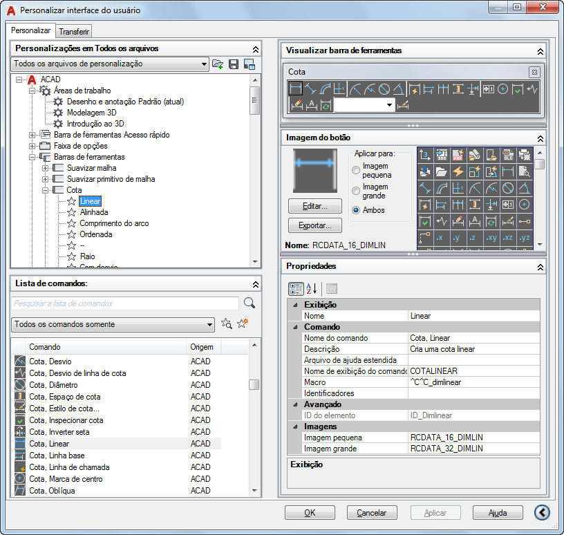 Nome - Exibe o nome do comando. O nome que inserido será a legenda ou o nome da dica de ferramenta exibida no programa.