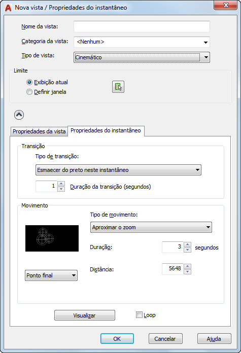 Visualiza a transição e movimento atribuídos à vista nomeada.