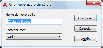Especifica um nome para o novo estilo de célula e especifica o estilo de célula existente no qual o novo estilo de célula terá base.