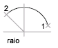 Desenha o arco secundário no sentido anti-horário, a partir do ponto inicial (1) até o ponto final (2). Se o raio é negativo, o maior arco é desenhado.