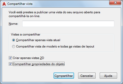 Define as opções para a criação de uma vista compartilhada.