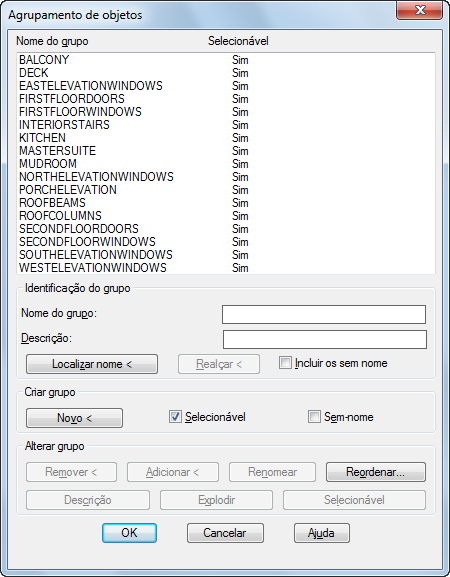 Cria um novo grupo a partir dos objetos selecionados, utilizando o nome e a descrição sob Nome do grupo e Descrição.
