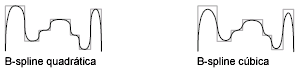 Utiliza os vértices da polilinha selecionada como pontos de controle ou molduras de uma curva aproximando-se de uma B-spline. Essa curva, chamada polilinha de ajuste à spline, passa através do primeiro e último pontos de controle a menos que a polilinha original seja fechada. A curva é atraída em direção aos outros pontos mas não passa necessariamente por eles. Quanto mais pontos de controle você especificar em um determinado ponto da moldura, maior atração eles exercerão sobre a curva. É possível gerar polilinhas de ajuste à spline quadráticas e cúbicas.