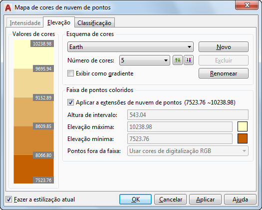 Edita as configurações de esquema de cores para estilizações de nuvem de pontos de Elevação.