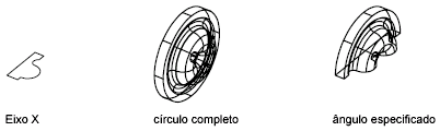 Um ângulo positivo revolve os objetos em uma direção anti-horária. Um ângulo negativo efetua revolução dos objetos em uma direção horária. Também é possível arrastar seu cursor para especificar e visualizar previamente o ângulo da revolução.