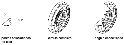 Não é possível efetuar revolução em objetos contidos em um bloco ou objetos com auto-interseção. REVOLVER ignora a largura de uma polilinha e efetua revolução a partir do centro do caminho da polilinha.