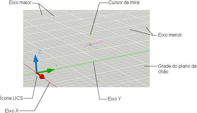 - Grade do plano de chão. Quando a projeção em perspectiva estiver ativada, a grade será exibida como uma grade de plano de chão. As cores são definidas para as linhas principais de grade, linhas secundárias de grade e para as linhas de eixo.