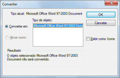 Exibe o tipo de objeto que está sendo convertido ou ativado.